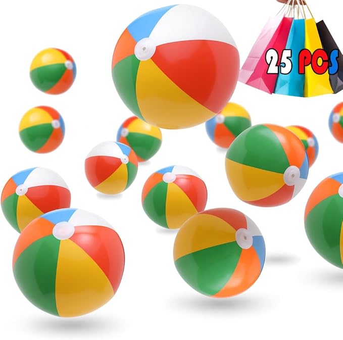 - Summer Party and Decoration: Total of 25 small beach balls are included. Cheap but a fun little toy for everyone to enjoy. These beach balls are perfect for pool party, cool decorative pieces for floating toys and floaties. Fun for floating and swimming pool games. Great kids’ toy for beach play on the sand, outdoor park and picnic activity games ect….