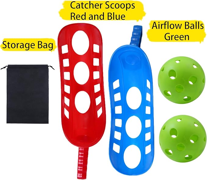 - Package includes: there are 4 pieces of toss catch scoops and 2 pieces of catch balls in a pack, enough for many people playing together; we also provide a black drawstring bag for you to store those toys and carry them anywhere you want