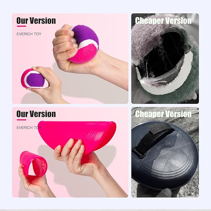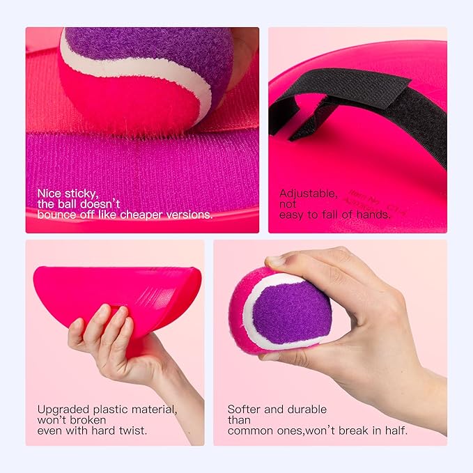 - 【Softer and High-quality Ball Set】The old version's tennis balls were very hard and lacked elasticity, making them difficult for kids to catch. Our balls are much stronger and softer, yet still have great stickiness, so kids can easily catch them and enjoy a comfortable feel. Kids won't lose their fun because they can keep catching the ball. This ball game is always lots of fun for little ones, even at family reunions.
