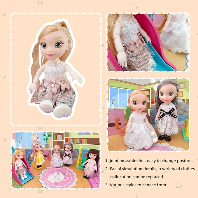 6.3" Mini Girl Dolls, Include 10 Sets Handmade Doll Clothes, 5 Sets 6.3" Small Girl Dolls, 5 Pairs of Shoes