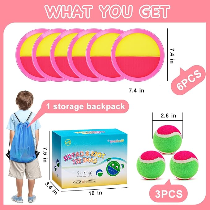 - 💪 Includes 6 Paddles & 3 Balls – More to Share: Unlike other sets, ours includes 6 paddles and 3 sticky balls – enough for group play and family fun. Durable materials and strong Velcro ensure long-lasting use and better grip for little hands.
