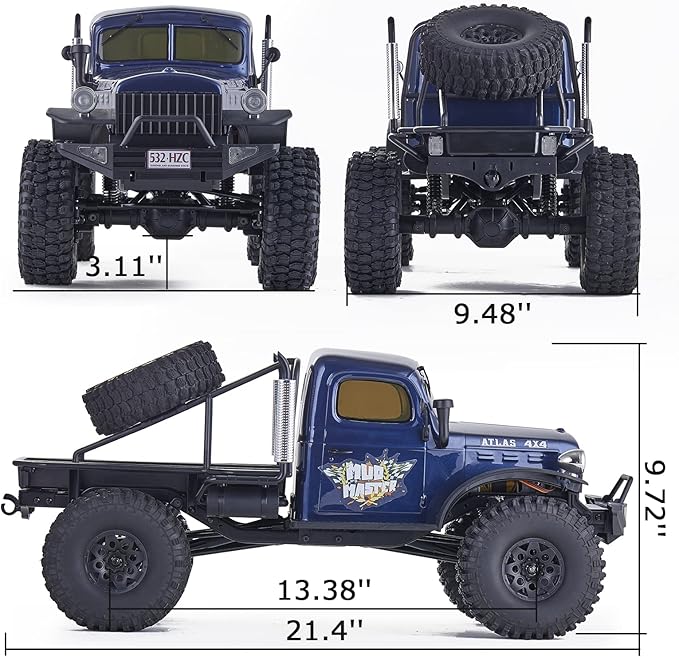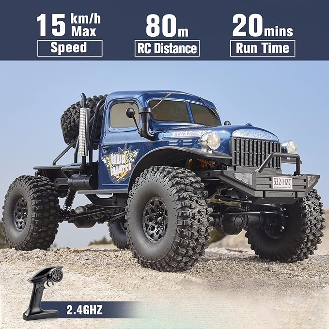 - 【Good Choice for RC Players】: This 1/10 scale Altas rc crawler comes with great looks and excellent systems. In both dynamic and static aspects, the real vehicle has been painstakingly restored. If you are looking for your next rc crawler, this large scale rc crawler is a great choice for every player. If you are looking for your first rc crawler, then this truck is also perfect for beginners. You can take your own Altas on outdoor adventures, battling swamps, rainforests, hills, deserts ect.