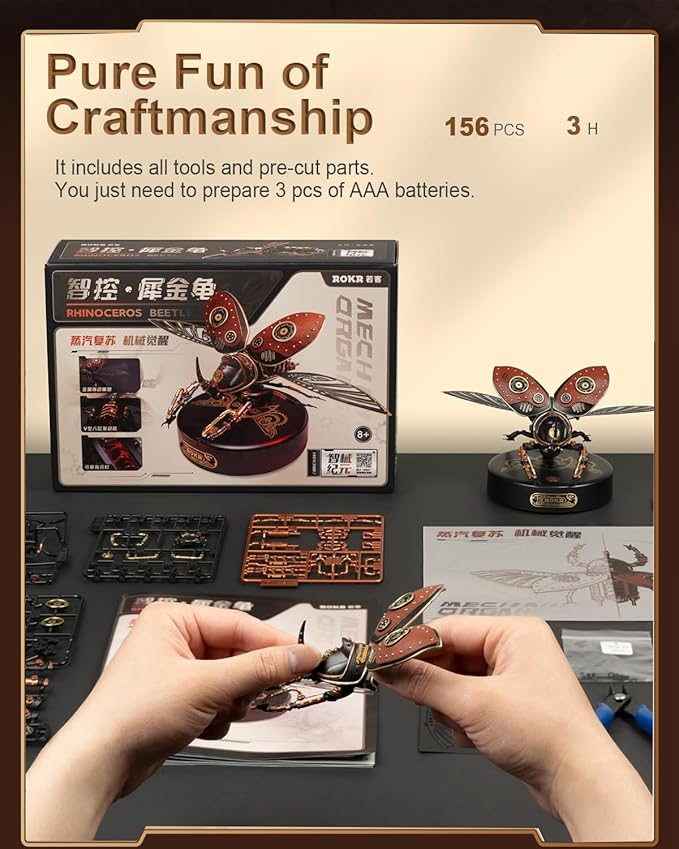 ROKR 3D Puzzles for Adults Electric Insect Metal Model Building Kit Desk Toys Hobby Kit for Adults Gift for Teens (Rhinoceros Beetle)