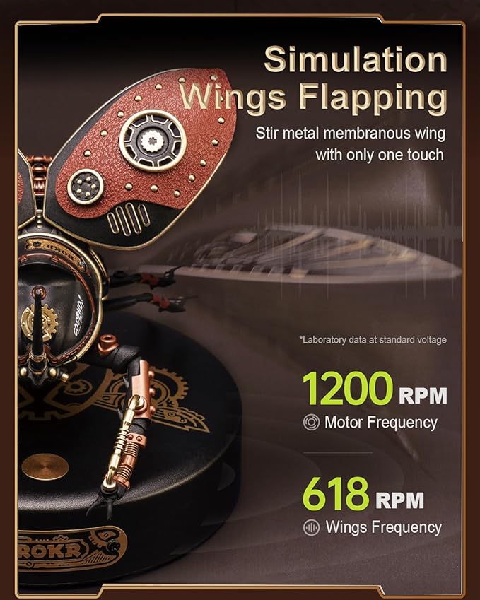 - 【Realistic Flying Wings Simulation】The 3D puzzle uses a planetary gear motor to provide steady energy, so it could simulate the quick flapping of beetle's wing membrane up to 618 times per minute. Besides, it's equipped with V8-cylinder engine gadget and indicator lights to add special flavour.