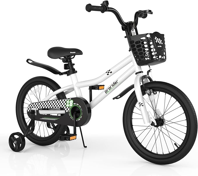 - [ Durable Wheels & Sturdy Frame ]: Anti-slip tires and detachable training wheels ensure steadiness and are helpful for beginners to practice balance. The training wheels can be removed when your child is ready. Meanwhile, the carbon steel frame helps to create a long-term use of the kids training bike.