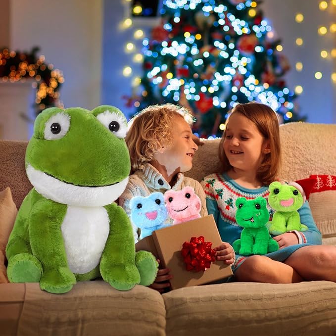 MorisMos Big Frog Stuffed Animal Plush Toys,Large Green Mommy Frog Toy and 4 Baby Toads for Kids,Cute Plush Toad Toys,Soft Green Stuffed Animals Gift for Girls Boys Christmas Baby Shower Birthday