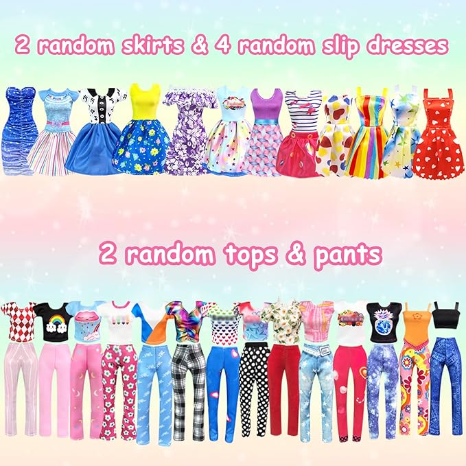 - 🎀Unique Design - All fashion doll clothes are carefully made by hand. Very easy to put on and take off. Doll clothes and accessories in various colors and patterns, enough to dress up kids' dolls and enrich their imagination!