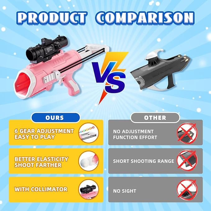 - Highlight: The snowball blaster gun is the main character. It comes with 6 adjustment function. Help your children more effortless and safe when using it. Launching the snowball easily. Be prepared to fire the snowball and win the game.