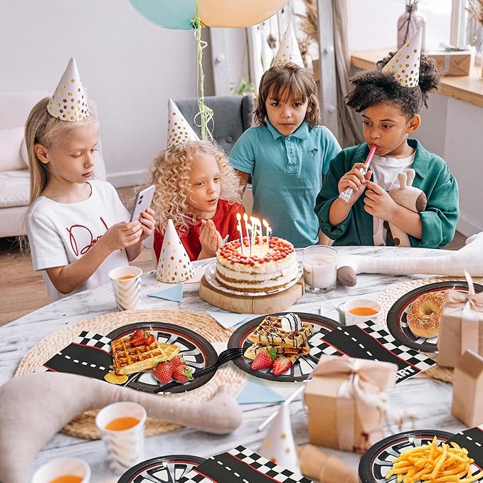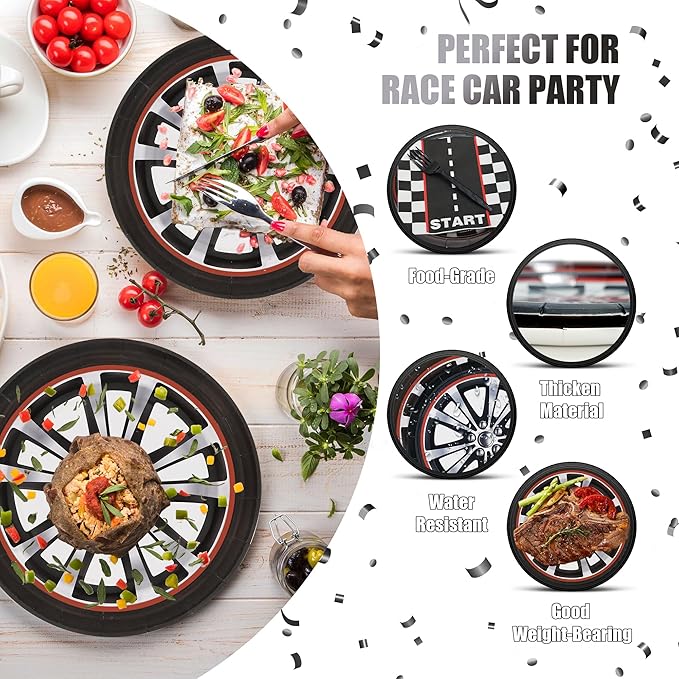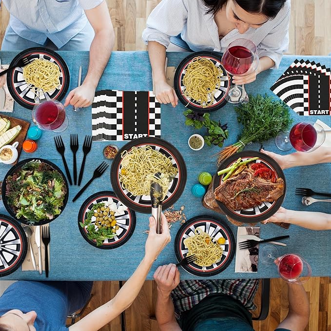 - 🏁[Serve 24] You will receive 24 race car dessert plates (7"), 24 race car charger plates (9"), 24 race car napkins and 24 forks. Enough for you to cater for up to 24 guests.