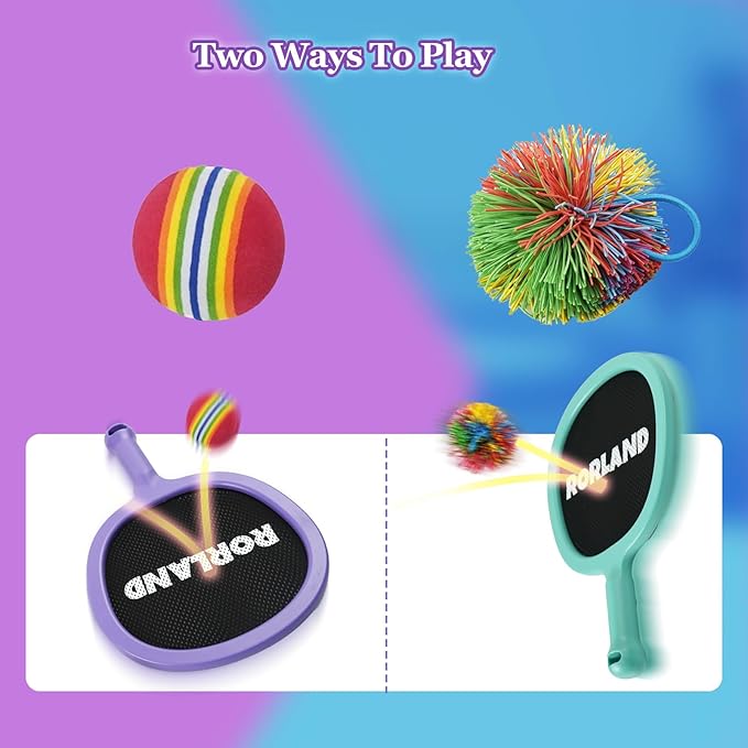 - š¾ [Suitable for Indoor and Outdoor] Because of lightweight foam ball big paddle surface, it is safe for indoor play as well. No damage or injury risk. Kids and parents can enjoy fun indoor activities during rainy days or winter months. And it is also great game for camping trip, beach outings or swimming pool.