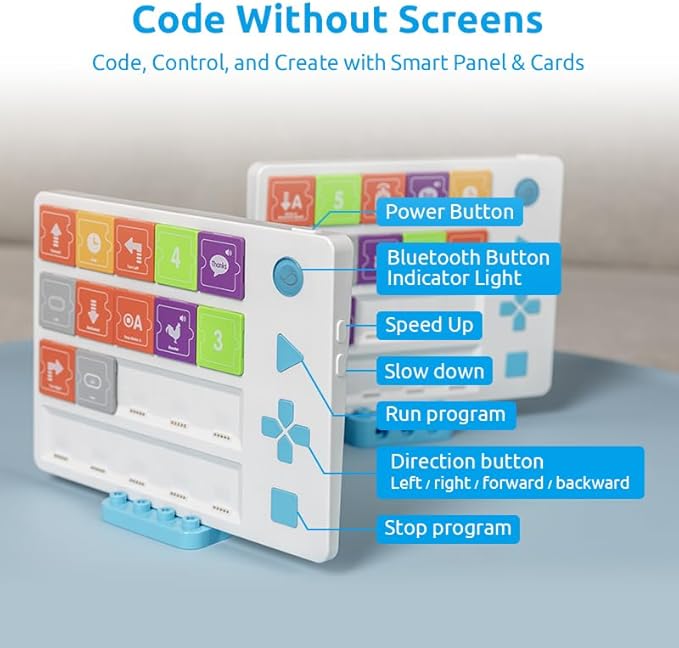 - 【Smart Tech – Interactive & Engaging】Equipped with a controller and motor, C3Pro uses magnetic coding cards and a board with different indicator lights to help kids catch coding mistakes. It connects automatically via Bluetooth and supports remote control—bringing hands-on robotics to life in the most exciting way!