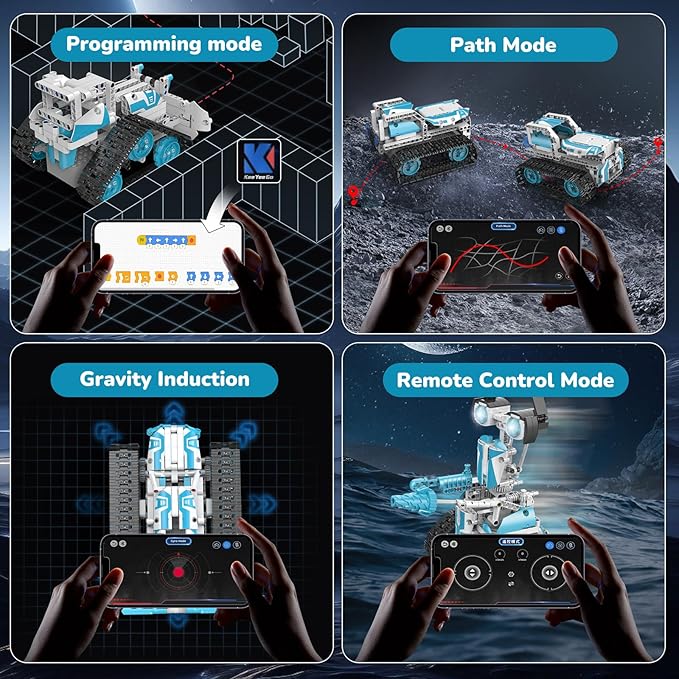 - Dual Remote Control Modes:Control your robot via remote or app with four exciting modes: Remote Control, Path Mode, Gravity Sensor, and Programming Control. Move in all directions—left, right, forward, backward, and 360° rotations—on smooth indoor or outdoor surfaces. Easy to use and packed with interactive features, it guarantees hours of engaging play.