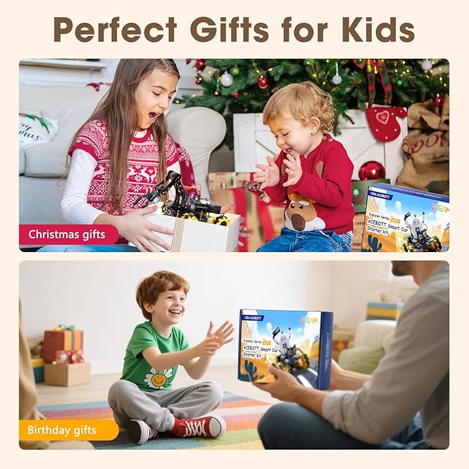- Expandable for Ongoing Exploration. This expandable STEM robot car kit supports modular add-ons like cameras, tank tracks, solar panels, and robotic arms (sold separately). As kids grow, they can explore object tracking, photo capture, and multi-DOF control, keeping them engaged with coding toys for ages 8–13 and helping them transition into more complex engineering kits for kids age 14–16.