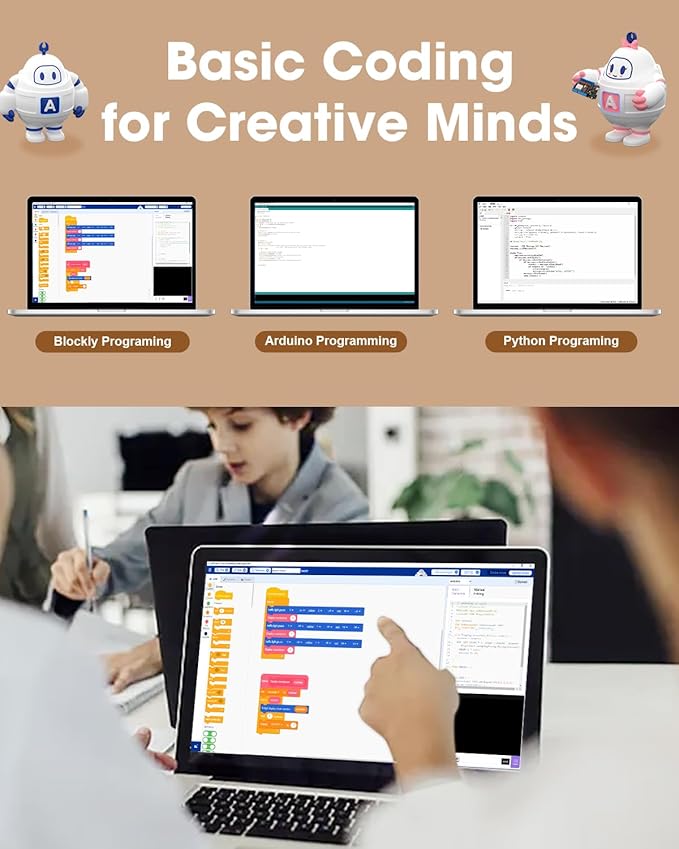 - LEARN BY PLAYING - The robot kit offers educational features, based on the ESP32 platform, combining mechanics, robotics, programming, electronic assembly and construction elements. With the instruction guide of the preset coding files, guide you step by step on how to build and code a robot through ACEBOTT Scratch,Python or Arduino IDE. By playing with this robotics toy, children's curiosity and interest in physics will be stimulated, fully engage with the toy and develop early coding skills.