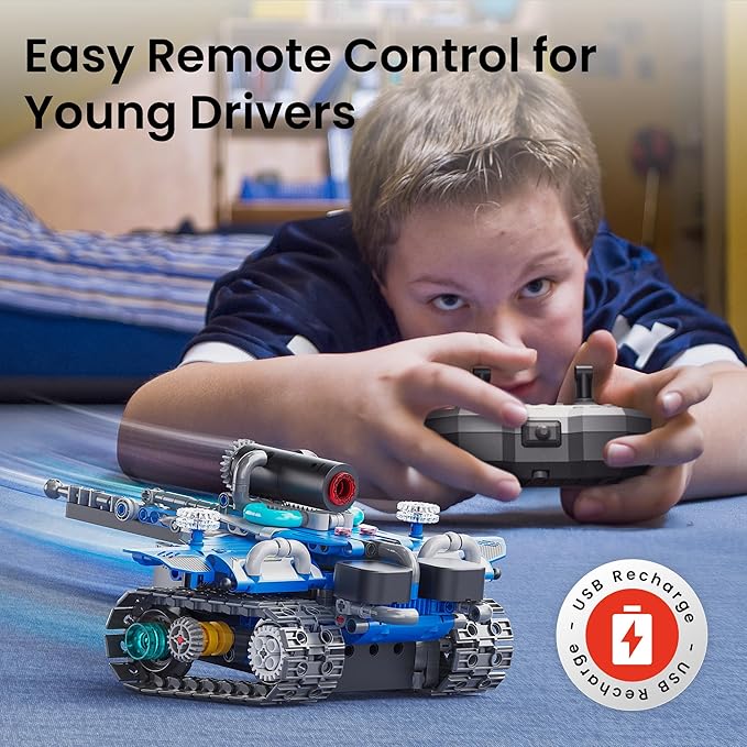 - š§© 5-in-1 Build Models: Includes 596 blocks to build five fun designs: Robot, Tank, Car, and more. Each model has a different difficulty level, letting kids start simple and gradually take on more challenging builds
