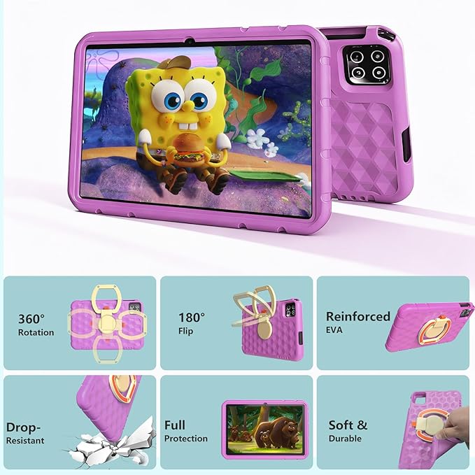 - KID-FRIENDLY HD DISPLAY AND BUILD: The 10.1-inch 1280x800 HD screen features low blue light technology to reduce eye strain. Includes a shockproof EVA case and comes with a 2-year worry-free replacement policy, perfect for kids aged 3 to 12.