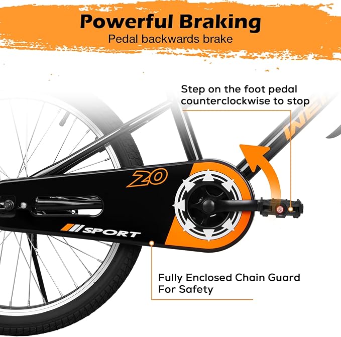 - Safe Riding Guarantee:The kid bike is designed with a dual system of handbrake and foot brake for children, and even young or weak children can use the foot brake to brake smoothly. Fully enclosed chain guard, effectively preventing pants legs and skirts from being caught up, making cycling more reassuring.