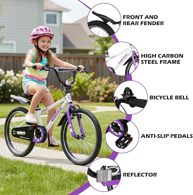 - Durable And Easy To Maintain:The bicycle for boys girls adopts a high carbon steel frame, which is sturdy, resistant to bumps, and long-lasting. The front and rear fenders are fully protected, preventing mud and water from splashing and dirtying clothes, making daily maintenance worry free and effortless.
