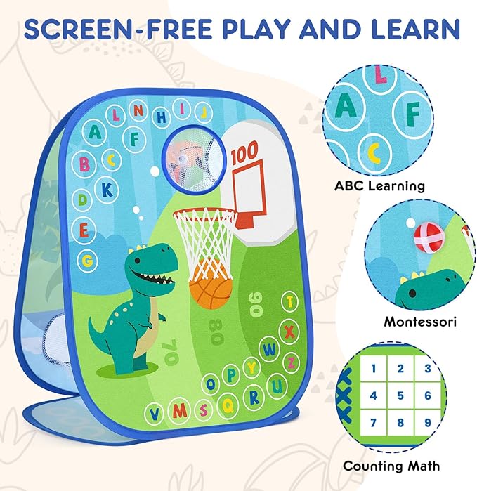 - Multi-functional Designs combining traditional gameplay with outdoor activities. Finditop has 6 ways to play, including toddler cornhole, a more difficult toss game, toddler basketball hoop, dart game,tic tac toe game,counting math game,providing children with different toddler learning games.